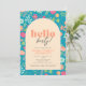 Flores néon bonitas em um estilo especial e retrô fazem este pop convite de aniversário! Misturando pasta, rosa, laranja e azul em um fundo azul vibrante. Um convite simples, mas chique, com as palavras "Olá, quarenta!", mas pode ser editado para qualquer idade. É fácil personalizar este design com todos os detalhes da sua festa.