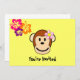 Macaco-menina e um trio de flores de hibisco tropicais constituem a trabalho de arte para este convite bonito