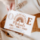 Um divertido convite para o primeiro aniversário do arco-íris com tons terracotta mudados que é perfeito para uma festa temática do arco-íris para o seu primeiro aniversário!