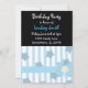 Um fundo preto acentuado por uma borda de listras azuis e estrelas com um design floral caprichoso. Personalize com todas as informações de aniversário conforme desejado.