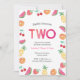 Tenha uma segundo tropical (segunda) para a sua pequena festa de aniversário! Este adorável convite de aniversário cor-de-rosa-frutado apresenta frutas de aquarelas, incluindo abacaxi, melancias, laranjas, cerejas e morangos. Todos os detalhes, incluindo (exceto idade), são personalizáveis. Outras idades também disponíveis nesta coleção.