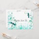 Este Convite para Casamento de Dragões de Teal apresenta libélulas em um design de pintura.