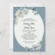 O Elegante Christian Dusty Blue Watercolor Floral Oval Enquadrou o Convite para Casamento com letra simples e sotaques cardíacos.
