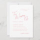 Este convite de casamento simples, chique e minimalista tem uma canvas branca limpa... com uma caligrafia delicada e arejada, concebida num esquema bonito de cor rosa pêssego.