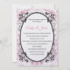 Mostrado em um martelo Pérola sempre popular, este convite tem um padrão de coroação rosa Pastel impresso no fundo na frente e no verso. Um Oval Preto com folha de rico enquadra o texto dentro. Os nomes da noiva e do noivo são realçados em um rosa suave. Corpo de texto mostrado em preto. Escolha sua escolha de papel e personalize a partir de suas imagens, se desejado.