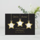 Este elegante convite para o almoço de Natal apresenta três estrelas douradas com arcos que contêm os detalhes do dia, data, hora e convite para almoço do rsvp. Estas três estrelas ouros aparecem sobre um fundo preto elegante onde estão contidos detalhes adicionais dos partidos. Uma maneira muito agradável de convidar seus convidados para um almoço de Natal nesta temporada de férias. Direitos autorais
