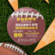 Este convite temático de Futebol é perfeito para celebrações de aniversário, Partidos de Playoff ou Superbowl. Cada linha de texto é perfeitamente personalizável para dizer exatamente o que você quer!