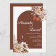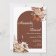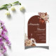 Celebre seu dia especial com este convite de casamento quente e rústico, projetado com um rico fundo laranja queimado, florais de bolo mole e um layout moderno de arco. Perfeito para casamentos outono, este design combina folhas secas, dahlias e tons de terra para trazer uma estética aconchegante e elegante à sua cerimônia. Destaques da design: ・Base de cor de laranja rica em terracotta/queimada ・Forma de arco moderna - popular e moderna ・Florestas de cor d'água com cores inspiradas no outono ・Mistura elegante de fontes de serif e script Excelente para: ・Casamentos outono ・temas russos/boho ・casais mínimos e naturais ・Cerimônias exteriores