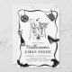 Ponha o tom para uma na moda e assustadora festa do Dia das Bruxas adulta com este convite de festas noturno das raparigas preto-e-branco. Apresentando óculos martini, esqueletos dançarinos, fantasmas e ilustrações ao estilo vintage, este elegante modelo é perfeito para encontros de Halloween com um toque de classe.