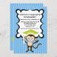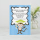 Quem está se formando no jardim de infância ou na pré-escola??? Seu macaco! Este convite adorável tem um fundo azul brilhante listrado. Há uma marca central branca esboçada em preto com pequenos pontos brancos. No fundo do centro deste convite está um macaco giro com um diploma. O macaco tem um boné de formatura brilhante na cabeça.Personalize com informações da festa e você está pronto para ir. Veja nossos muitos outros designs e cores em nossa loja. ©Riefka