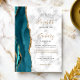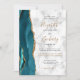 A borda esquerda deste elegante convite de casamento moderno apresenta uma coloração aquosa lacrimogênea aparada com uma falsa brilha de ouro. O texto personalizável combina manuscrito preto e dourado, fontes em copperplate e itálico em uma cinza e fundo de mármore branco. O verso apresenta um design de chaleira e de agata dourada.