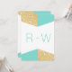 Moderno, simples, limpo, chique. O azul é como o azul de tiffany, o ouro é um espantoso brilho âmbar. Ambas as cores se complementam maravilhosamente neste convite especial para casamento de designer que você pode personalizar online aqui e agora para criar um convite impresso profissionalmente feito por um designer gráfico a um custo muito barato. Depois de encomendar, eles serão entregues à sua porta (envelopes incluídos!). Escolha entre uma variedade de papéis especiais ou mantenha-os simples e simples.