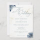 Convide seus entes queridos com este convite romântico e elegante de casamento, com florais de cor azul macia e poeirento e sotaques de ouro sutis. Perfeito para casamentos rústicos, boêmicos, ou vinhedos, este design equilibra o capricho e a sofisticação para o seu dia especial.