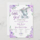 Uma Menina Doce está a caminho! Rosas Púrpura Dupla Personalizadas e Chá de fraldas Elefante/Peanut de Cinza Convite para comemorar a chegada de uma nova menina!