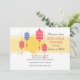 Um belo convite com três lanternas vermelhas e uma azul. Festivo e versátil para muitas celebrações.