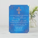 Estilo de papel pergaminho sutil em matizes azuis. Incorporado com detalhes florescentes finos em volta das bordas e uma cruz detalhada. O texto religioso tradicional também pode ser personalizado para atender ao seu estilo ou cores exatos.
