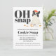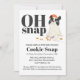 Este convite do Cookie Exchange fará seus convidados sorrirem. Este design apresenta uma ilustração fofinha de um filhote pego comendo cookies de Papai noel e as palavras "Oh Snap". Adicione todas as informações essenciais na frente e as instruções de troca de cookies na parte traseira. Você pode deixar o vazio traseiro, se preferir, simplesmente excluindo o texto na seção Personalizar este modelo. Certifique-se de adicionar envelopes ao seu pedido se precisar deles, pois eles são opcionais nesta versão de orçamento.