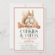O convite de chá de fraldas de uma criança de feriado bonito apresenta um esquilo segurando uma caneca de cacau/chocolate quente e biscoitos. O verso apresenta um fundo vermelho com padrões brancos de neve. Personalize-o para as suas necessidades. Você pode encontrar produtos correspondentes na minha loja.