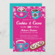Biscoitos e cacau retro da festa de Natal moderna modelo convite para descarregamento instantâneo retrato 50ies de chocolate quente com flocos de neve e biscoitos cor-de-rosa e cor-de-rosa