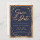 O Elegante Marinho Azul e Cooper Dourado Romântico Salve o Convite de Data. Uma design moderna e romântica com linhas geométricas de ouro falsas sobre fundo azul marinho.