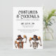 Bem-vindos a uma festa de fantasia de Halloween com este convite de festas simples e divertido. Um simples aspecto preto e branco que tem uma mistura de tipografia de fontes serif e ornamentado. No fundo estão dois esqueletos de preto e branco com sotaques de laranja e segurando, é claro, alguns coquetéis. A fonte tem um pouco de ressentimento ou aflição por uma vibração antiga. Cute Black White Vintage Pirate Skeleton Bebendo Cocktails E Festas De Festa De Halloween. Disponível como um convite impresso ou como um convite digital para download que você pode enviar por e-mail ou que foi impresso localmente!