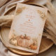 Warm, romantic, and effortlessly seasonal, this fall wedding design features a rich heirloom pumpkin surrounded by soft florals and delicate autumn foliage. A graceful botanical arch frames the wording, creating a balanced and elegant composition with subtle rustic charm. The warm neutral background and burnt orange accents make it perfect for an outdoor autumn celebration, barn wedding, or harvest-inspired event.