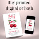 Celebre a noiva para ser "Cherry on top" com este Amor caprichoso e inspirador é Cherry Sweet Invitation em cores vermelha, verde e rosa e arco de fita para seu Chá de panela