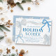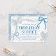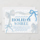 Celebre a temporada em estilo com este charmoso e inspirado em coquetes Convite de festas de Natal Feriado Soirée, com arcos desenhados à mão, cores suaves e um romântico design cheio de fita. A frente apresenta quatro arcos desenhados à mão — duas fitas em negrito com faixas em azul-bebê, mais dois acentos menores em azul-céu clássico e azul-claro. O dorso oferece um fundo azul gelado refrescante com um padrão de arco delicado.
