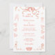 O convite de casamento do estilo da moda da moda com algum talento vintage, da matiz rosa quente aos elementos efêmeros, reunidos para criar um design alegre e divertido. Flores e fitas brancas, o texto está pronto para você personalizar seus próprios detalhes e textos. Inverte para o quadro de fita e as iniciais simples do casal