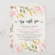 O convite elegante e moderno é apresentado por Sip and See, flores de aquarela em tons suaves de rosa e ouro, com folhas botânicas verdes e peludas. Personalize com seu Sip e veja detalhes em letras negras elegantes.