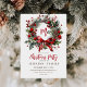 Cartão de na moda elegante com coroa festiva de Natal em técnica de aquarela e fonte clássica e letra manuscrita.