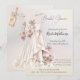 Este elegante chá de panela apresenta um lindo vestido de noiva de cor d'água pintado à mão em tons suaves de pelúcia, cortado graciosamente com dobras delicadas e decorado com flores roxas elegantes. O fundo colorido da pérola melhora a sensação sofisticada e eterno, enquanto a mistura de scripts modernos e fontes sofisticadas de serifa adiciona um toque de na moda. Perfeito para um chá de panela chico, feminino e clássico, este convite é ideal para noivas que amam uma estética romântica e suave. No verso, uma garrafa de champanhe de aquarela correspondente nas mesmas matizes delicadas adiciona um toque festivo e comemorativo ao convite com o texto "Pop do champanhe".