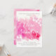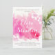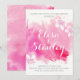 Abstrato de cor d'água moderna salpicos cor de rosa flores flores casais florais de casamento chá convite com uma pintura de aquarela pintada manualmente com textura em tons de rosa e rosa-quente, flores em branco e rosa e texto em branco e cinza. Este design de casamento elegante e na moda é um modelo perfeito para o seu primavera, verão ou outono/outono. Note que esta é apenas uma imagem de aquarela e não textura real. Para obter melhores resultados, escolha feltro ou outro papel.