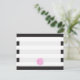 Um presente com um padrão de fundo listrado em preto e branco. Personalize com o seu monograma num círculo rosa inspirado na aquarela.