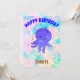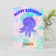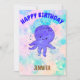 Adoráveis convites para polvos para bebês ao estilo dos desenhos animados para festas infantis. Suas cores vivas e design bonitinho trarão um sorriso para qualquer cara de criança. Aquarela em cor rosa, branca e azul no fundo. Edite o nome para personalizá-lo.