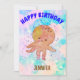 Adoráveis convites para polvos para bebês ao estilo dos desenhos animados para festas infantis. Suas cores vivas e design bonitinho trarão um sorriso para qualquer cara de criança. Aquarela em cor rosa, branca e azul no fundo. Edite o nome para personalizá-lo.