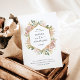 Esses incríveis convites para o casamento apresentam uma falso estrutura geométrica dourada cercada por flores leves, neutras em aquarela, cores de tons de terra como pêssego bege, rosa empoeirado e verde macio com acentos e folhas de ouro. Um elegante olhar floral de vassoura sobre um simples fundo branco.