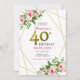 Convites Cor de Água Rosa Dourada Floral, aniversário de 40