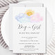 Você está planejando uma festa de revelação de gênero? Convide familiares e amigos para comemorar com este encantador convite. Apresenta nuvens de aquarela cor-de-rosa e azul com um sorriso de sol e tipografia de na moda que diz "Menino ou Rapariga." Perfeito para uma festa reveladora de gênero em qualquer estação. Facilmente personalizável. Original Watercolor © Michele Davies.