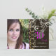Convites lisos vintage preto barroco damasco, com acabamento em rosa neon (que pode ser personalizado), adornado com espirais de pérolas. Novamente, as espirais são completamente ajustáveis... você pode copiar e colar onde desejar, incluindo o lado reverso. Nós colocamos uma camada deste damasco sobre um papel de pergaminho falso vintage para dar um visual rústico. Simplesmente adicione a foto do graduado. Copyright © 2010 PixDezines.com e PixDezines no zazzle.com