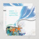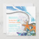 Casamento na praia de PixDezines, com estrelas-do-mar, espirais de algas e ondas azuis em cor de fundo. Todos os elementos são personalizáveis.