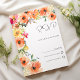 Este maravilhoso design de convite para o casamento apresenta adoráveis convites para RSVP de Casamento Flórico, cor de laranja botânica, amarelo e rosa que são perfeitos para qualquer cerimônia elegante e sofisticada. Este elegante design de flor de aquarela colorido é ideal para o casal moderno e na moda. Personalize este design com sua mensagem e informações personalizadas. Todas as designs são impressas.