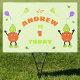 Convite de aniversário com um homem laranja engraçado