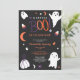 Adorável laranja roxo e cinza ilustrações de Dia das Bruxas um pouco mais no seu caminho chá de fraldas! Um convite para o chá de fraldas do Dia das Bruxas não tão assustador, com ilustrações bonitinhas com um fantasma, teia de aranha, aranhas bonitinhas, abóboras esculpidas, bolas oculares, luas e estrelas. Todas as cores das ilustrações são totalmente editáveis para que você possa criar sua própria paleta de cores.