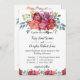O layout apresenta buquês de flores no topo e no fundo e, no centro, o convite com os nomes da noiva e do noivo em caracteres caligráficos elegantes. No verso está o código QR e um texto curto para inserir seu endereço de site e a data do RSVP