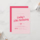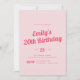 Convites de aniversário cor-de-rosa com script retrô. Convites divertidos e coloridos que podem mudar para qualquer idade.