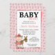 Uma ilustração bonito da vaqueira e do cavalo do bebê é caracterizada neste convite temático do chá de fraldas da vaqueira cor-de-rosa. Aperfeiçoe para um partido de chá ocidental do bebé do país. Personalize facilmente para seu evento. Doodles de Scrappin do © dos gráficos em www.scrappindoodles.com