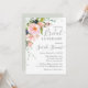 Este elegante convite para o almoço de noiva apresenta rosas pinceladas, cor-de-rosa, acentuadas com folhas de oliveira e galhos azuis aqua. A cor do texto complementa as cores suaves do buquê. O nome da futura noiva é corajosamente apresentado juntamente com os detalhes da data, hora e local do chá. Todos os detalhes, incluindo a cor do texto, são completamente personalizáveis.