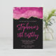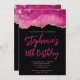 Um estilo moderno, glamouroso, manuscrito, ousado guião de 18 anos, convite para ela. Você pode personalizar este convite para outra celebração de aniversário de marco. Ele apresenta uma imagem gráfica de arte digital, cor-de-rosa e brilho dourado, que impressão como uma foto. As cores de fundo e fonte são personalizáveis.