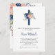 Esses convites da Primeira Comunhão, de tendências e na moda, apresentam flores desenhadas à mão em marinho azul e cor-de-água rosa. Muitas folhas verdes botânicas e folhagem decoram os buquês. Há também uma cruz azul correspondente e um roteiro manuscrito moderno.